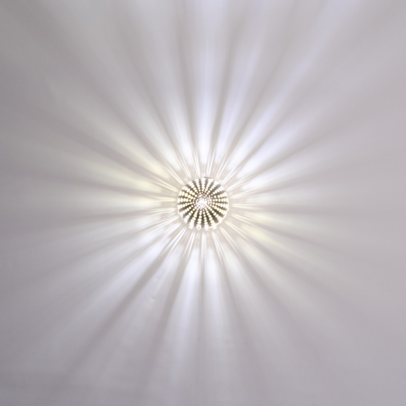 Lámpara/aplique de pared, de hierro tallado a mano con proyección estereográfica. Forma de bola que proyecta luces en techos y paredes.
