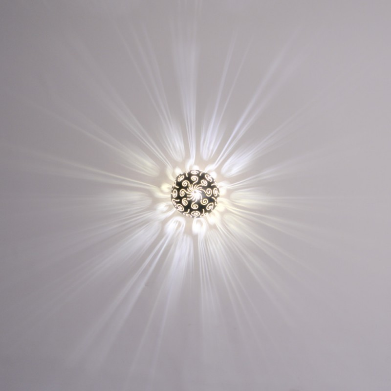 Lámpara/aplique de pared, de hierro tallado a mano con proyección estereográfica. Forma de bola que proyecta luces en techos y paredes.