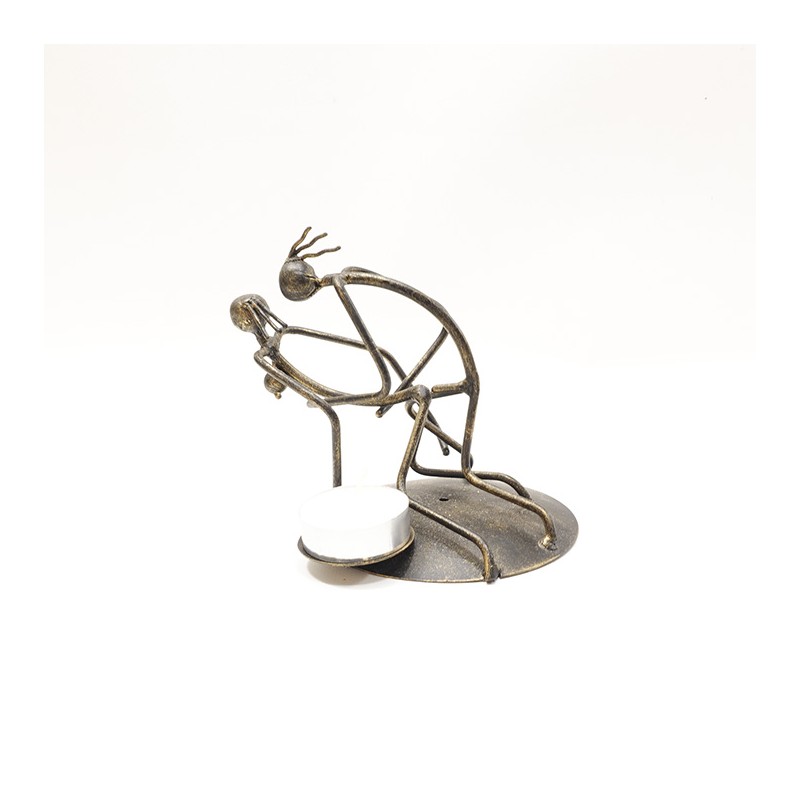 Porta Vela de Hierro tallado a mano para vela con acabado negro y patina dorada.