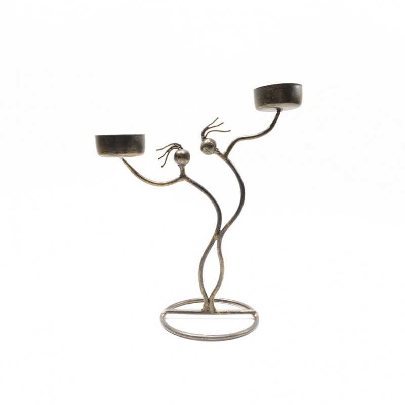 Porta Vela de Hierro tallado a mano para vela con acabado negro y patina dorada.