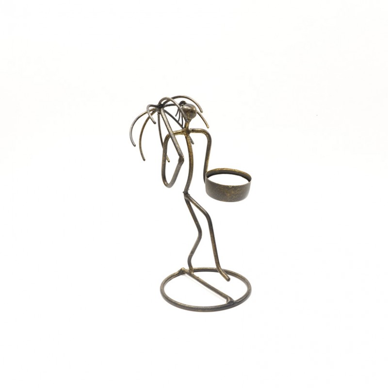 Porta Vela de Hierro tallado a mano para vela con acabado negro y patina dorada.