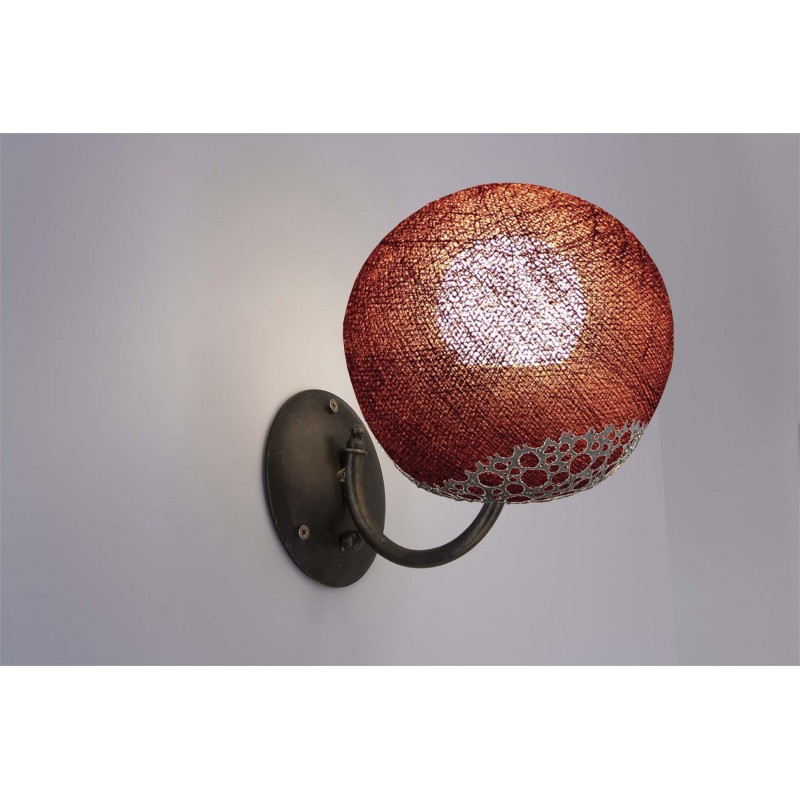 Lámpara de pared con pata curva 22cm. Incluye tulipas de hilo de algodón tailandés en forma de Bola 22cm Ø con embellecedor Desi. Con cable para su montaje.