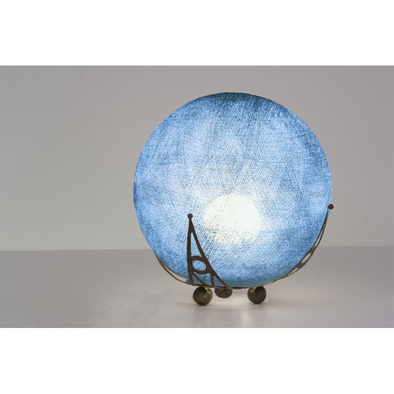 Lámpara de sobremesa EN OFERTA de 50% dto. Incluye tulipa de hilo de algodón tailandés en forma de Bola 29cm Ø con embellecedor Kuno. Cable de 2 metros con interruptor.