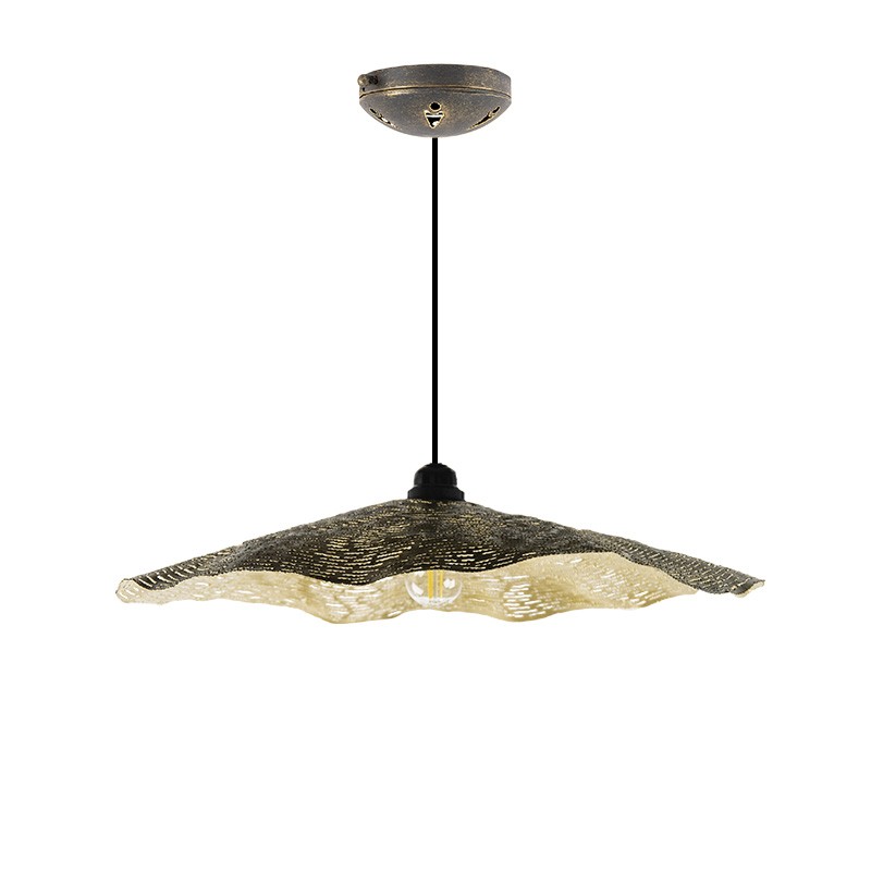 Lámpara suspendida con tulipa de hierro tallado a mano de 45 cm de diámetro con plafón de 12 cm, y casquillo estanco IP65 (montado).