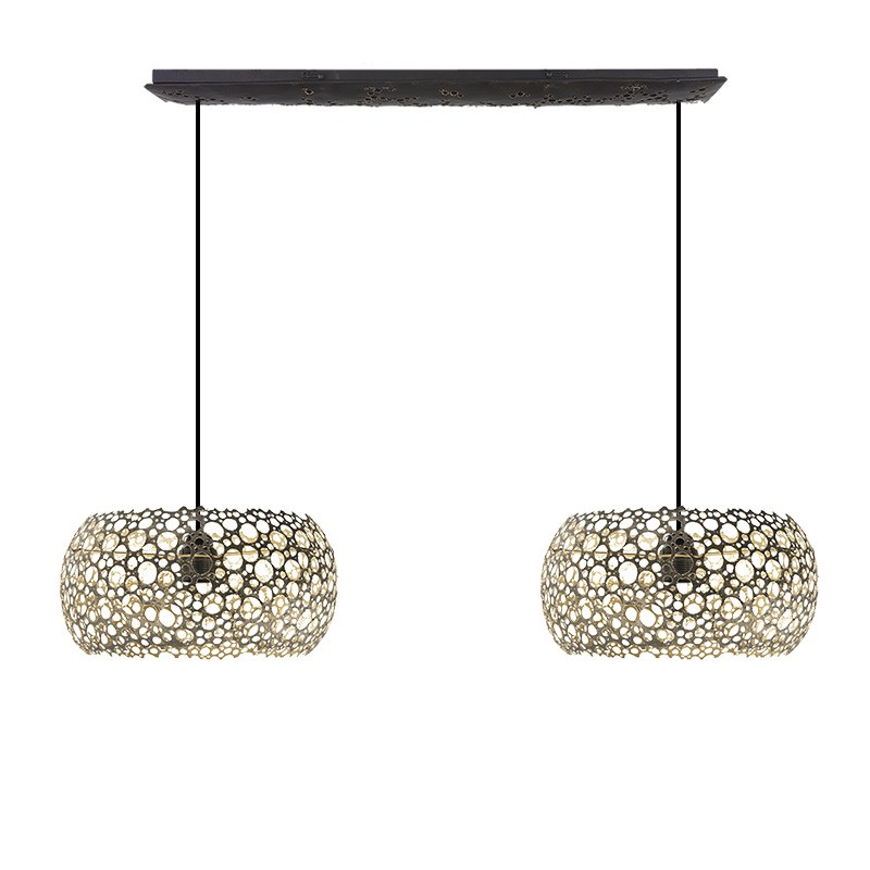 Todas nuestras lámparas son modelos exclusivos procedentes de Indonesia fabricadas artesanalmente. Son lámparas de hierro pintadas en negro con acabado en pátina dorada.