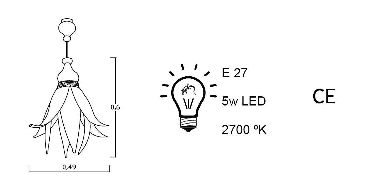 El tamaño de las piezas es aproximado, puede cambiar ligeramente por su fabricación manual. Las bombillas no están incluidas, si lo deseas disponemos de bombillas, pregúntanos por ellas.