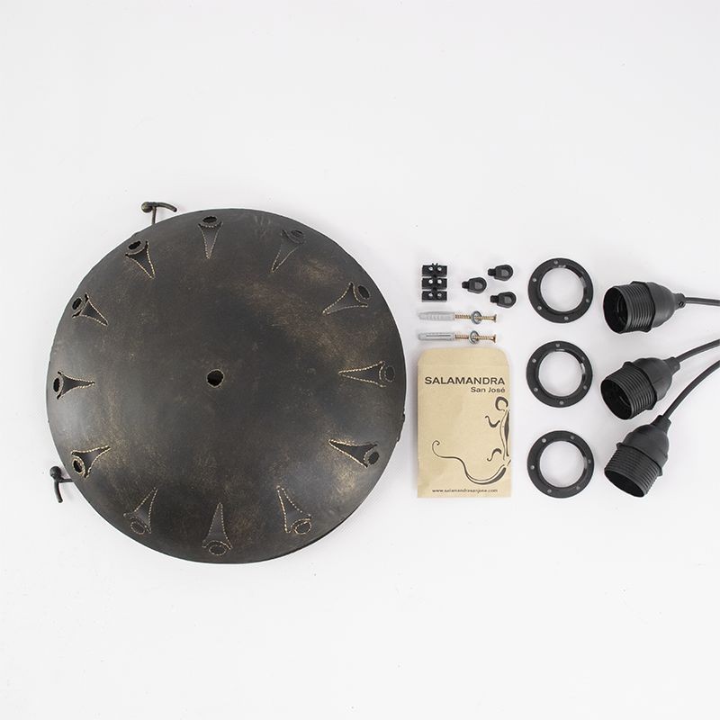 Plafón de hierro tallado a mano para lámparas suspendias de techo con 3 cables a medida y casquillos.