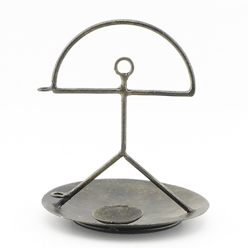 Porta Incienso de hierro tallado a mano para incienso en barritas o conos, con acabado negro y patina dorada. Medidas aprox. 13cm de alto. Diametro de la base 10cm