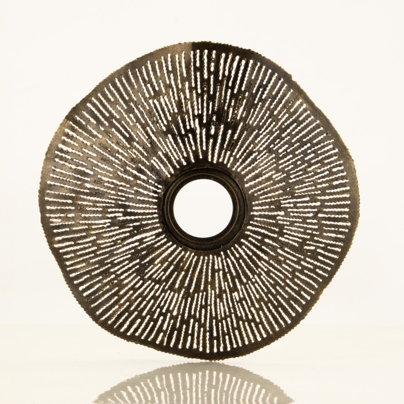 Pantalla no electrificada de hierro tallada a mano de 23 cm de diámetro.